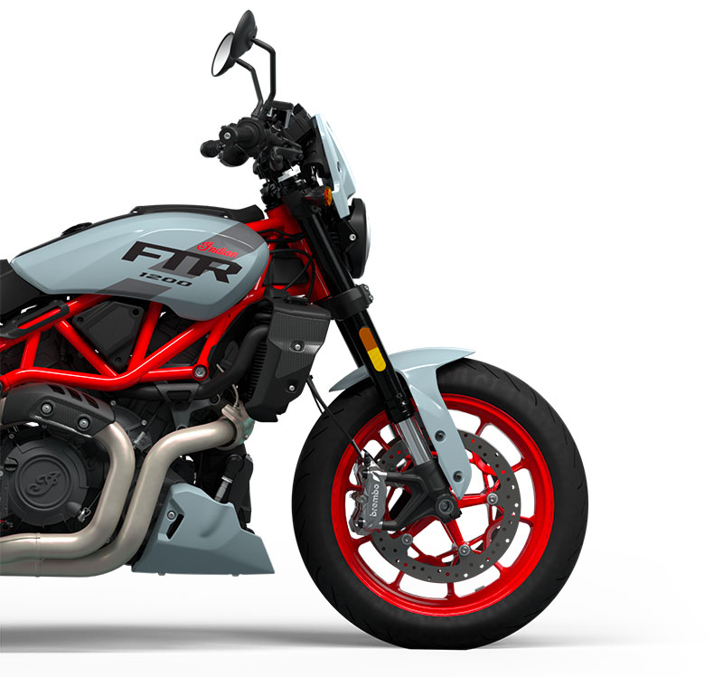 Plne nastaviteľná 43 mm upside down predná vidlica a jeden zadný tlmič robia FTR výnimočným. Masívne 4-piestové jednoblokové strmene Brembo a dva 320 mm kotúče sú špeciálne vyladené pre neuveriteľnú kontrolu a brzdnú silu.
